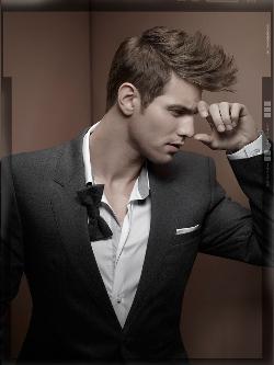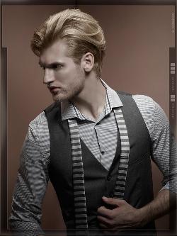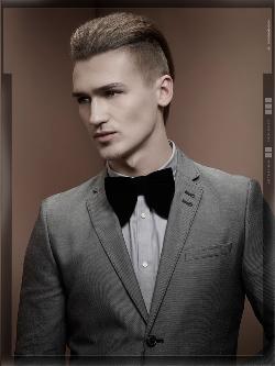 The style: A medium hold gel was applied to the perimeters and back sections and worked Joico Power Whip Whipped Foam throughout the top sections. He blew the hair dry with a cushion brush, wrapping it across the head for a smooth finish. Once strands were dry, he directed all the hair back, worked in a small amount of glossing polish and finished with a versatile hair spray.