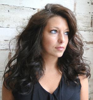 STEP 3: With A 2 inch-curling iron, pick sections of hair randomly through hair, and curl the lowest half. Loosen curls with fingers when they have cooled.