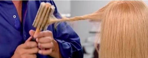 STEP 4: Unravel brush by pointing the top towards the top and unwinding over and under the section making a twist. Let the twist cool and set before fingering and applying a finishing spray.