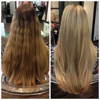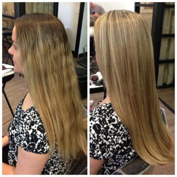 click image to zoom MODERN Facebook fan Drew Noreen, a stylist at Scottsdale, Arizona’s Pucci Salon, created this before and after using Wella Blondor lightener, and styled for a finish filled with body using Oribe stylers.