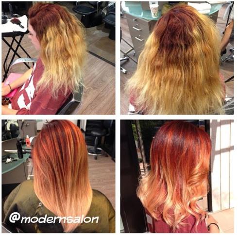 To correct this he used 3 different formulas and the feathering technique Dimitrios Tsioumas demonstrated in his ombre class. “Saw it within the email MODERN SALON sent out!!” he says.