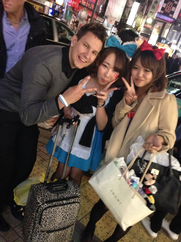There are many various kinds of dressing Lolita, starting from Gothic Lolita (a Victorian Gothic style with knee-length socks, ruffled or lace-rimmed tops paired with petticoats) to Sweet Lolita (a kid-like style inspired by baby dolls and Hello Kitty), and more. Lucky for our camera-happy group, it’s common for the high-fashion youth to be willing to take photos for tourists and infrequently-times throw up a peace sign to pose for the camera.